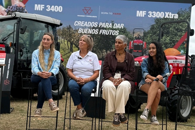 El jueves 12, el stand de Massey se pintó de rosa con el primer encuentro de *Mujeres que siembran el mañana* coordinado por Silvia Olivo, especialista en Heno y Forraje de Massey Hispano, y protagonizado por 5 mujeres del agro, entre ellas *Daniela Karl, vicepresidente y responsable de finanzas de la empresa*. El encuentro reflejó el protagonismo que hoy tiene la mujer en el agro y la toma de decisiones, un espacio para contar la historia de las 5 protagonistas e inspirar generaciones futuras.